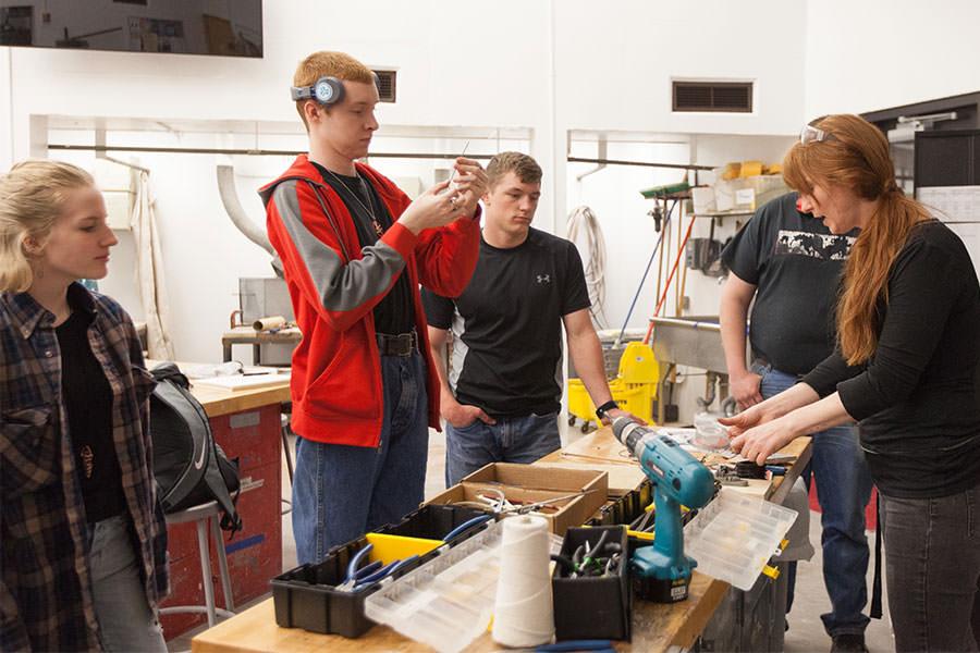 You can get your hands dirty and creative juices flowing by working in the three-dimensional arts like design, sculpture or ceramics. Students get hands-on experience with state of the art kilns, woodworking and power tools.